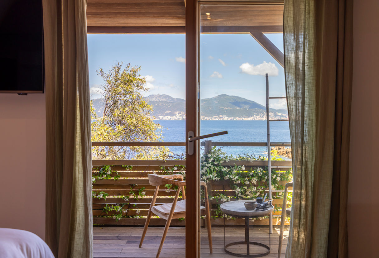 Située au premier étage, à l'écart es autres chambres, cet hebergement de 28m2, dispose d'une magnifique vue mer et d'un balcon de 8m2. La Chambre Capo Di Feno dispose d'un lit en 180x200, d'une salle d'eau avec douche à l'italienne et WC séparé. Une penderie, une television et un accès wifi complètent les préstations.